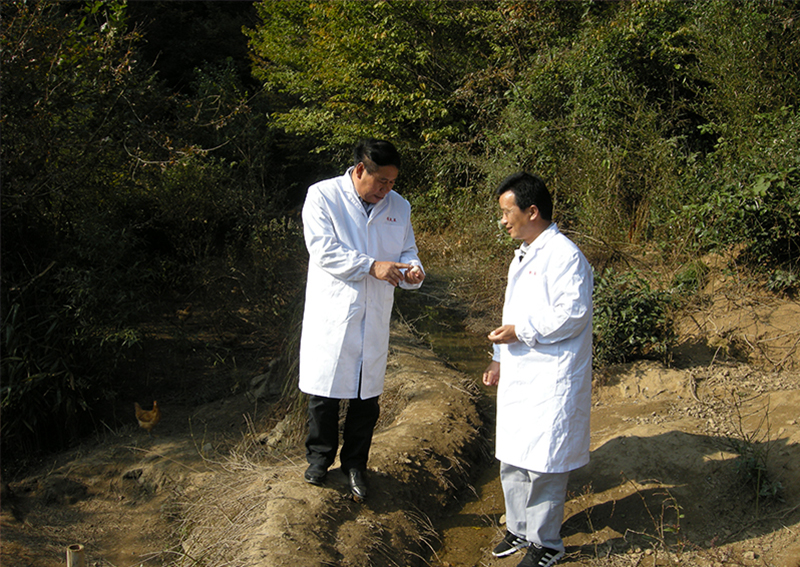2017年10月28日,安徽农业大学李福宝教授在公司总裁助理尹维龙的陪同下,来到云湶谷大别山散养鸡场进行技术指导,一只只散养鸡正在山林地里愉快地吃虫吃草,喝着山泉水。晚上回窝后还喂食有机灵芝孢子粉(工厂下脚料),一方面能提高土鸡抗病力,另一方面通过生物转化,增加鸡蛋营养。